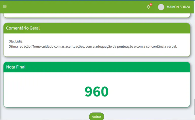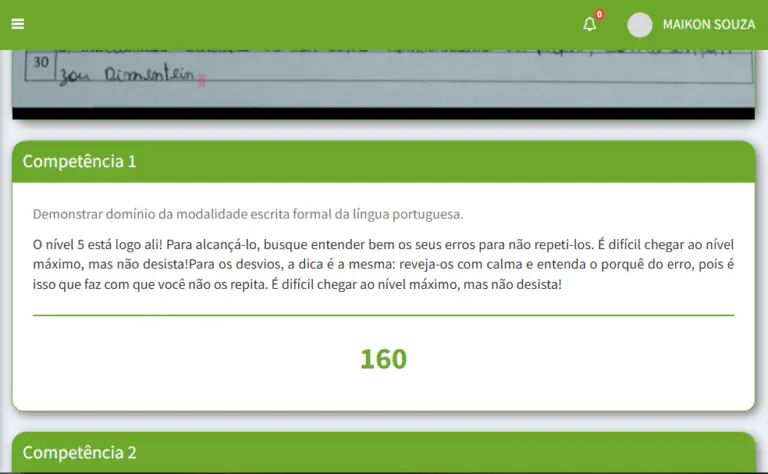 Você envia sua redação e recebe um diagnóstico que mostra: