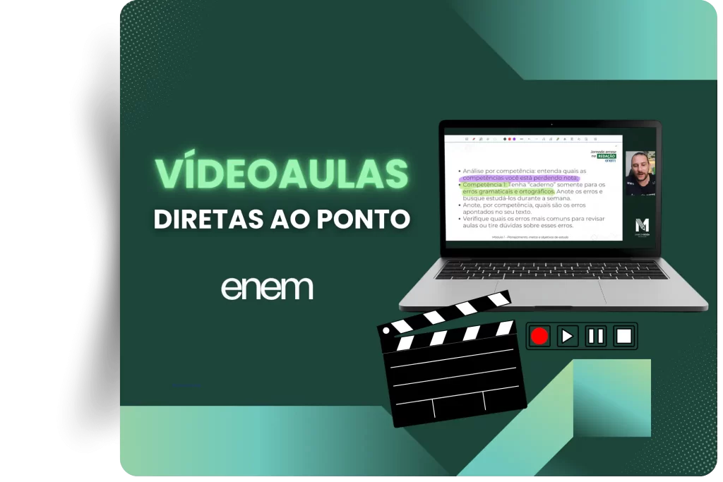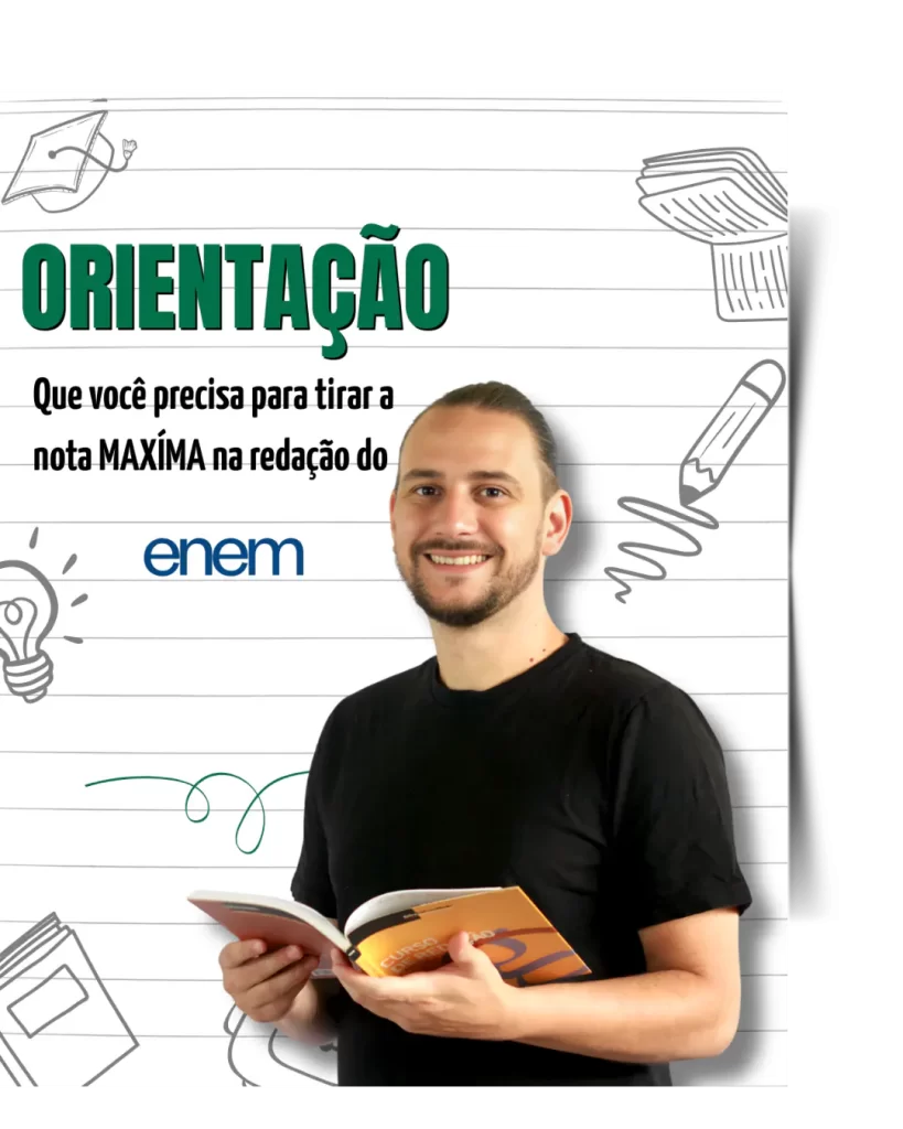A teoria é muito importante para a sua evolução, portanto vou te dar o meu e-book com tudo que você precisa saber sobre a redação do Enem. Com o e-book, além das aulas em vídeo, você terá um material de estudos totalmente baseado no manual dos corretores do Enem.